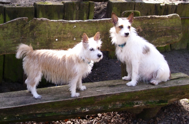Auf den Spaziergängen ist auch die werdende Mutter, die kurz vor der Geburt steht, völlig entspannt. Hiva mit Cachopa auf einer Bank. Hivas Bauch ist durch die Haare verdeckt, aber man sieht, wie er durchhängt.