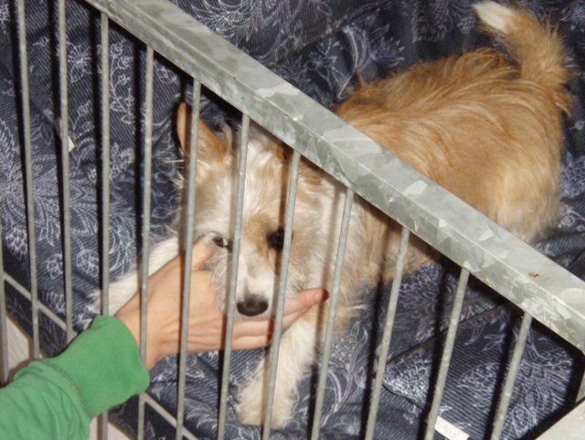 Podengo Portugues Pequeno sind noch eine ursprüngliche Hunderasse und dass Hiva Welpen hat und Cachopa noch auf Abstand bleiben muss, passt ihr überhaupt nicht. Sie hat eine erhöhte Sitzposition von der aus sie das Geschehen in der Wurfkiste genau beobachen kann. Jedoch reicht ihr das nicht. Sie möchte zu gern zu den Welpen hinein.