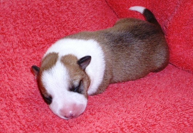 Die Hauptbeschäftigung der Welpen ist zur Zeit Schlafen und Trinken.