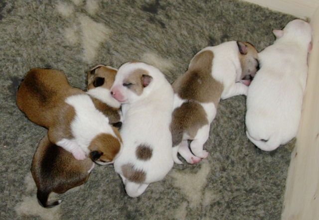 Unsere Welpen entwickeln sich bestens. Die Kleinen sind propper und die Farbnuancen bilden sich aus; so sind die Unterschiede schon deutlicher zu sehen.