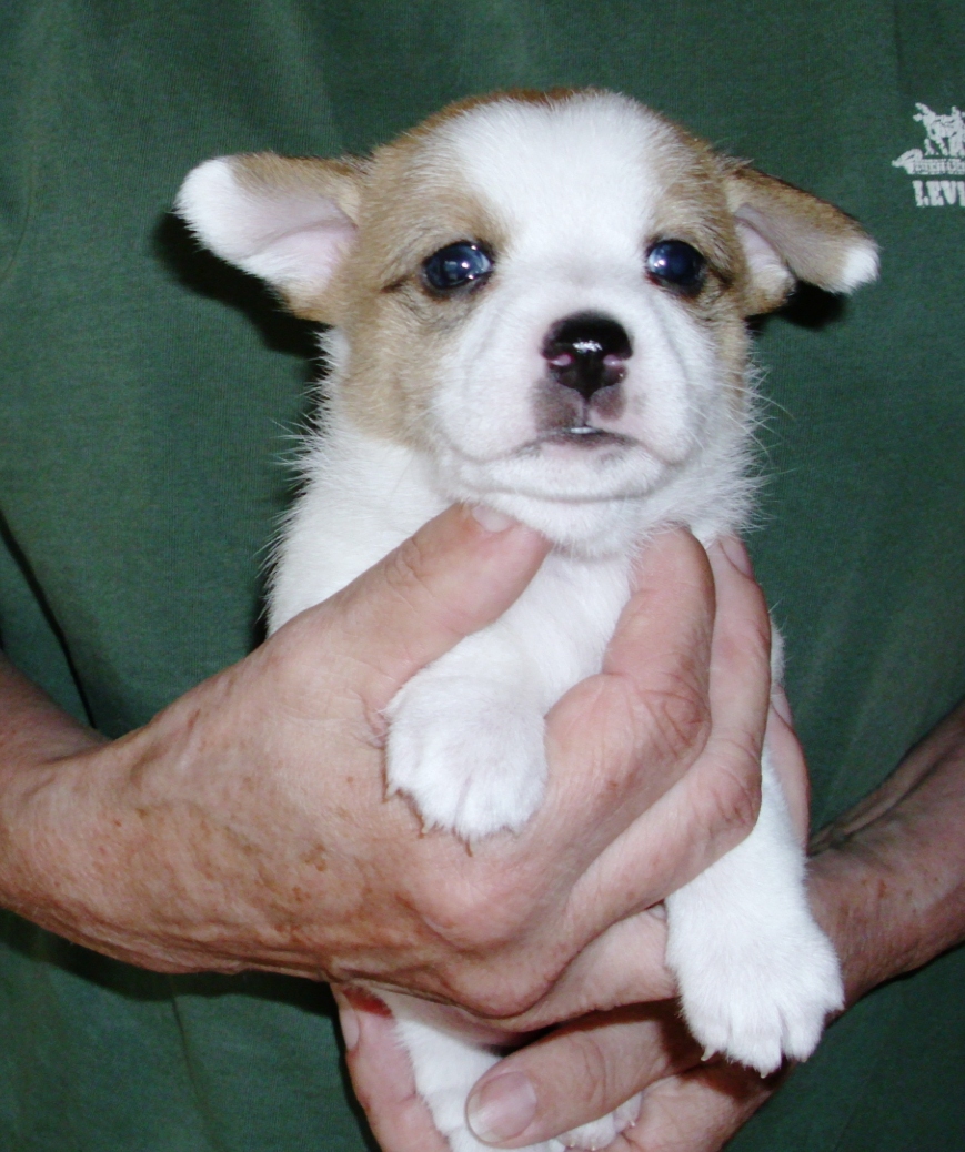 Wenn erwachsen, dann stehen die kleinen Ohren pilgerade in die Höhe. Bei Filomena beginnen sie im Alter von 4 Wochen gerade mit dem Aufrichten. Derzeit stehen sie auf viertel nach drei.