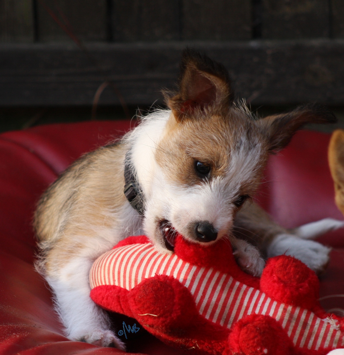 Für Famosa ist der kleine Stoffdino ein beinahe gleichgroßer Partner.