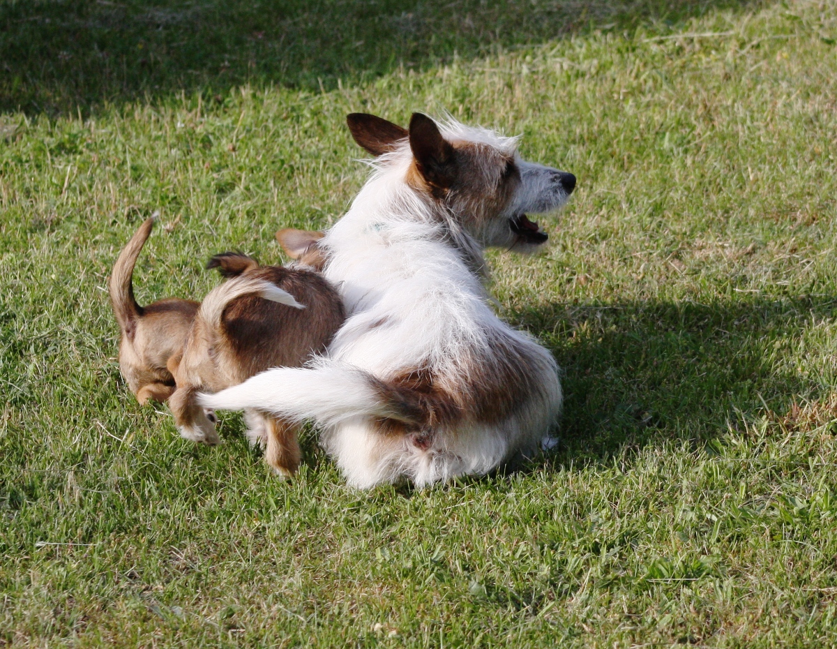 Welpen mit Mutter Hiva. Kesse Rasselbande macht Mutter nur scheinbar kopflos.