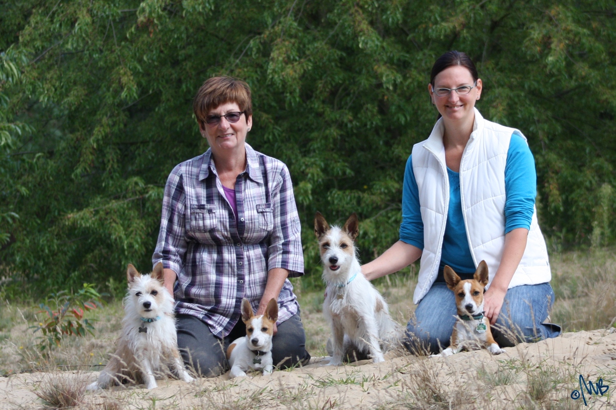 Podengo Portugues Pequenos mit ihren Züchtern.