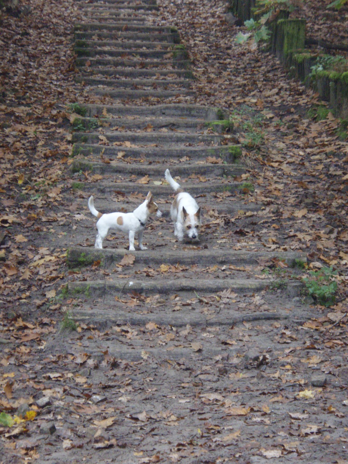 Zwei kleine Pogendos auf der großen Treppe im Hundeauslauf, auch wenn es keine Himmelsleiter ist. Dennoch können Hunde ein Stück vom Himmel erahnen lassen, oder etwa nicht?