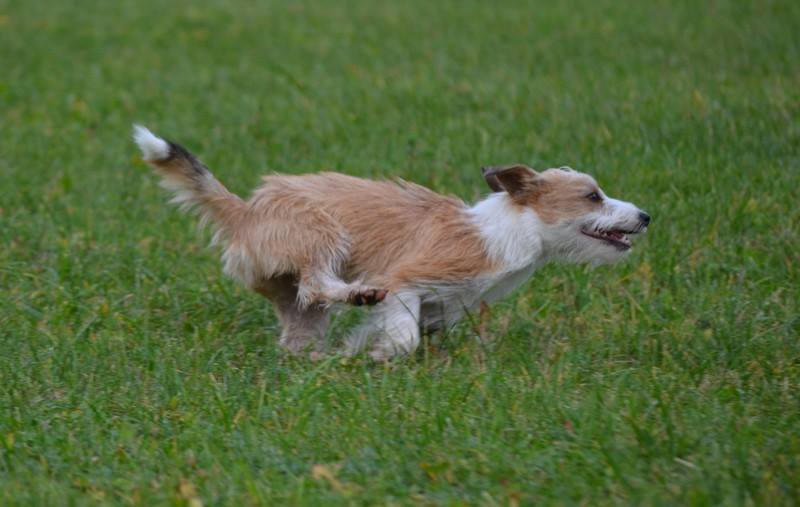 Auch kurze Beine können einiges leisten, wenn sie zu einem Podengo Portugues Pequeno gehören. Famosa im fliegenden Galopp.