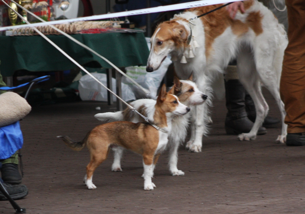Wo laufen sie denn? Den großen Barsoi im Rücken und den Wind von vorn, so lässt sich eine Ausstellung doch bestens angehen.