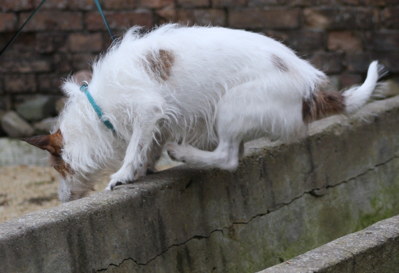Zur Fitness des Podengo gehört auch die Körperbeherrschung und Geschicklichkeit. Hiva zeigt wie es geht.