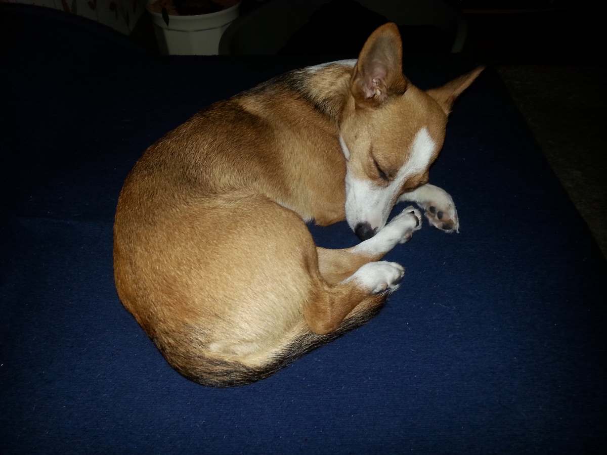 Podengo Portugues Pequeno sind so genügsam. Fernando schläft…auch ohne weiche Kuschelkörbchen, ohne Schnörkel und Rüschen. Ein echt genügsamer Pequeno.