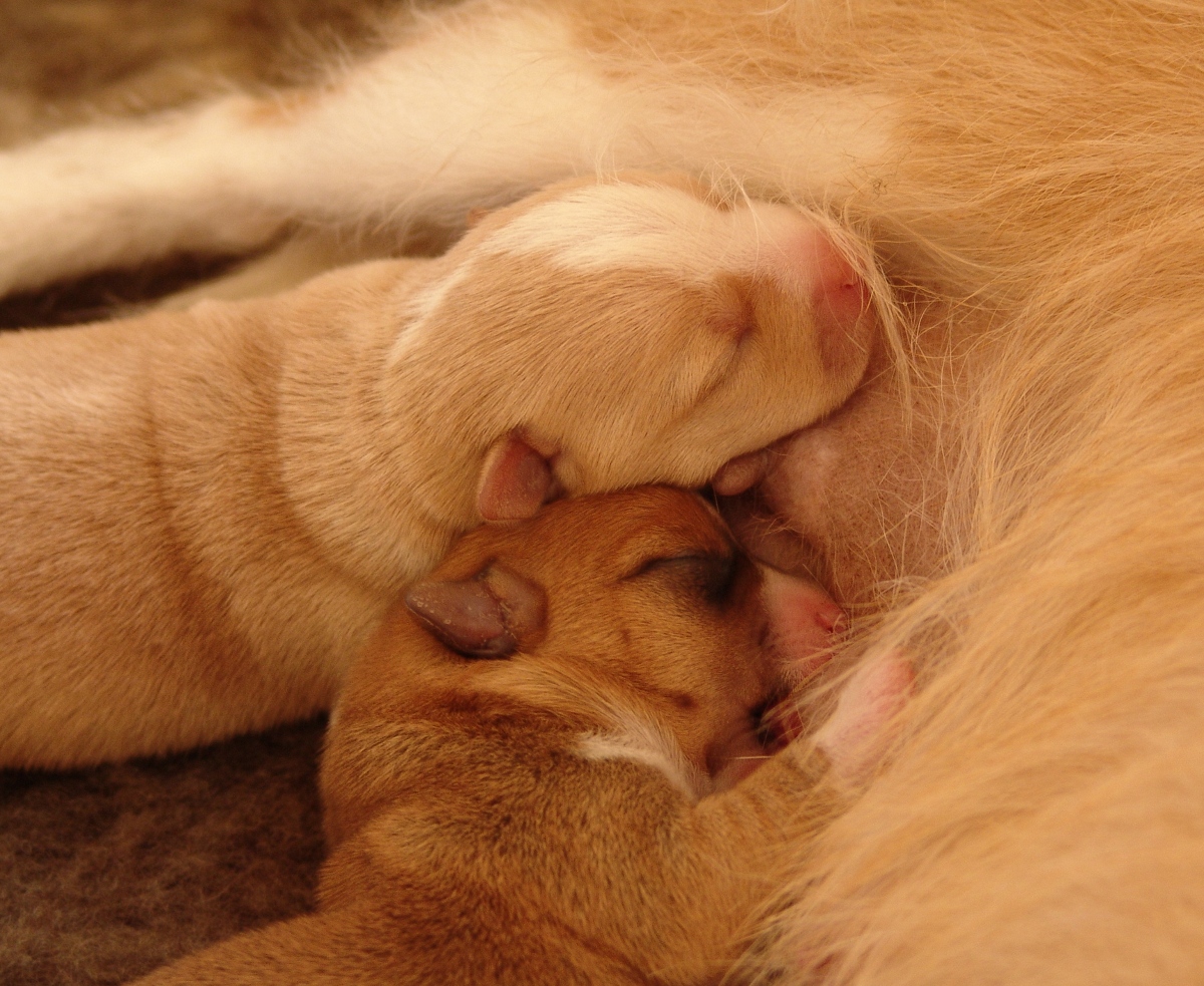 So lassen sie es sich gut gehen: Grandioso und Graciano von den Rottentotten, ihres Zeichens 4 Tage alte Podengo Portugues Pequeno-Welpen.