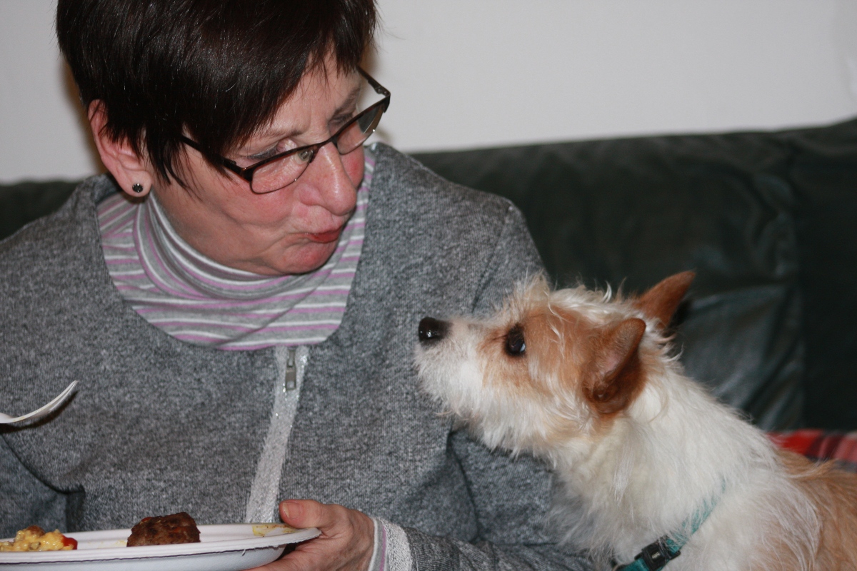 Es geht ja um das Futter, das jetzt Frauchen alleine isst…und das ist es was so weh tut ;-).