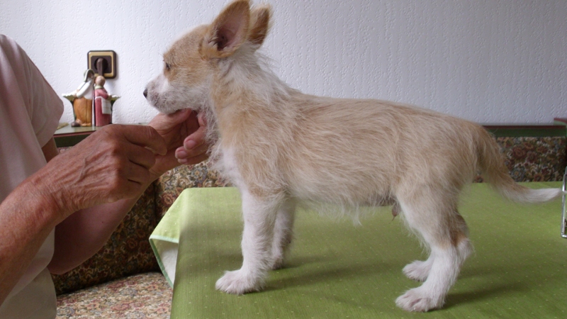 Stattdessen üben unsere Welpen das ruhige Stehen und lernen sich dabei wohl zu fühlen. Spielerisch und in Ruhe für wenige Minuten wird hier Henrique herangeführt, was er später sowohl beim Tierarzt als auch auf dem Richtertisch machen soll. Und es klappt schon ganz gut.