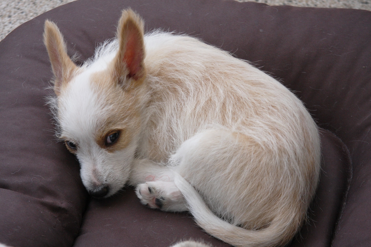 Henrique macht die Augen nicht zu trotz aller Müdigkeit. Es könnte ihm ja etwas entgehen. Pequeno Welpen sind sehr aufmerksam und bis sie die Müdigkeit übermannt, überwiegt die gesunde Neugier.