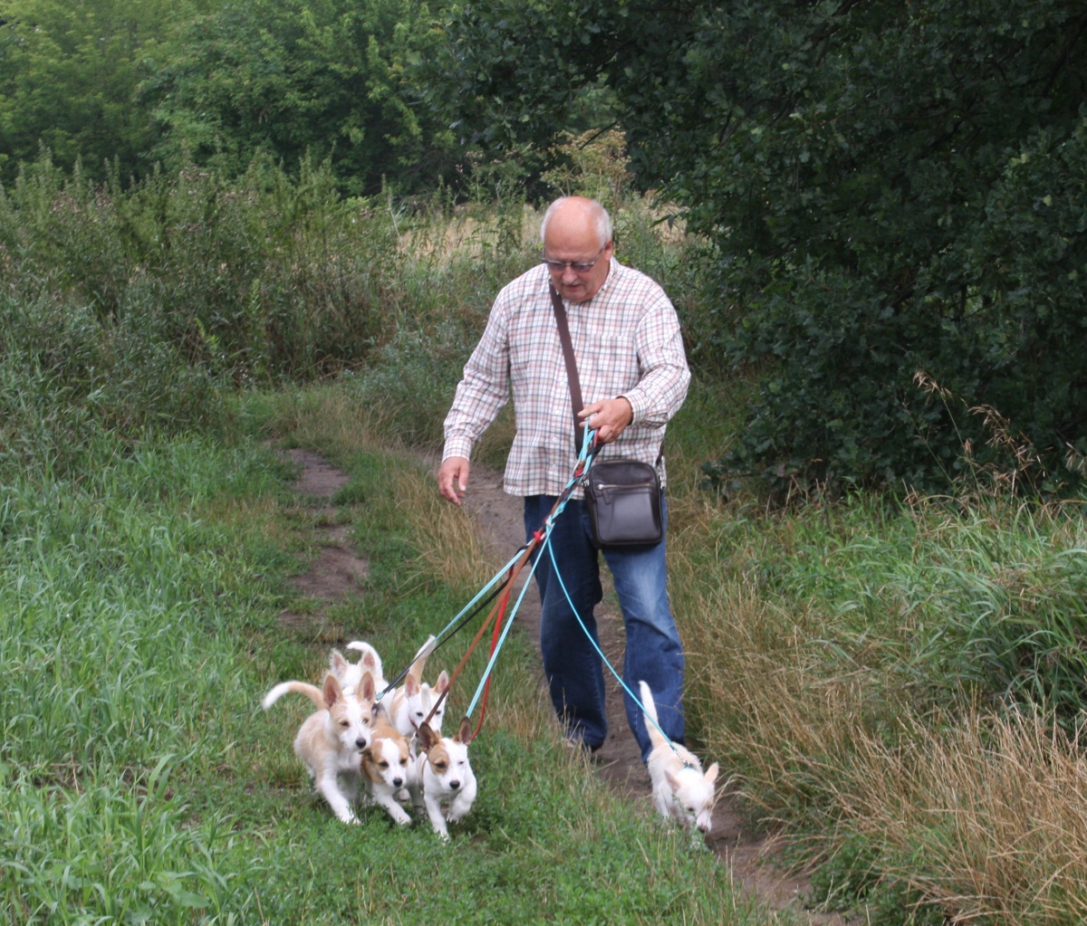 Unsere kleinen Podengo Welpen sind einfach unglaublich. Obwohl sie erst ein paar mal unterwegs waren, benehmen sie sich untadelig, folgen gut, gehen an der Leine und kennen mit fremden Hunden oder anderen Menschen keine Angst, sondern verhalten sich freundlich angepasst.