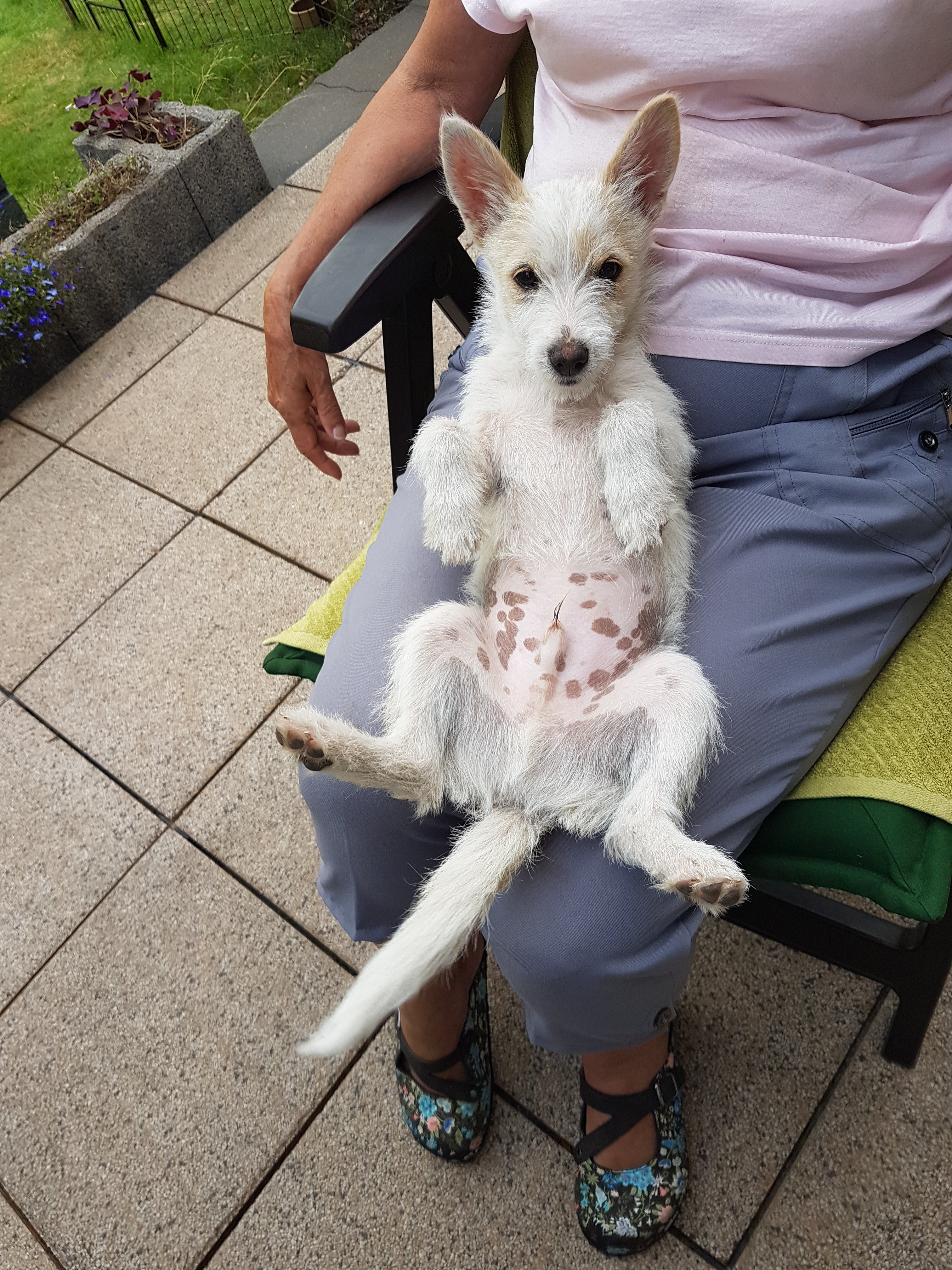 Es gibt nur zwei Sachen für den Podengo Portugues Pequeno 1. Action oder 2. Tiefenentspannung. Und beides ist in einem sehr ausgewogenene Verhältnis, will meinen: Wenn er schläft, dann schläft er…und das sehr gern und auch lange und es darf auch schon mal auf dem Schoß sein.