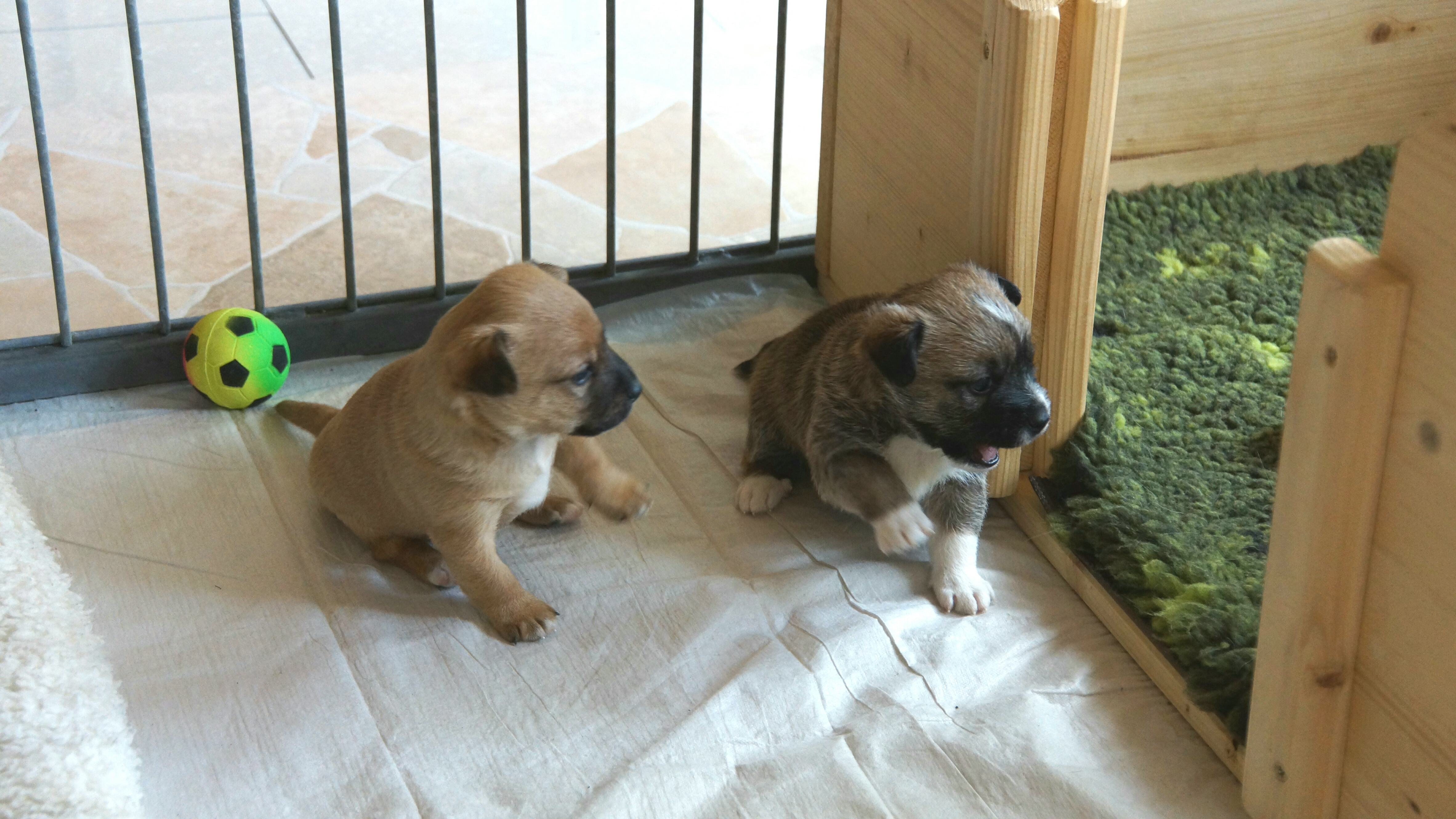 Nun wollen sich unsere Pequeno Welpen ihre Wurfkiste von aussen ansehen…