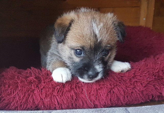 Isadora, das kleine portugiesische Podengo Welpchen bei ihrem ersten Ausflug nach draussen.