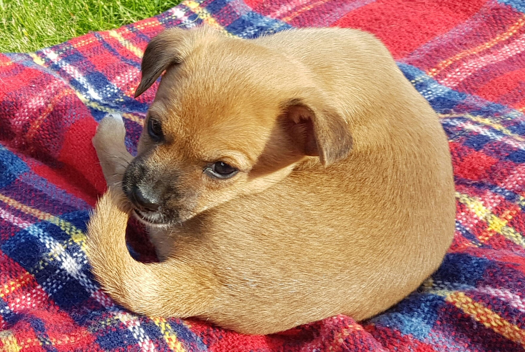 Imperio kann sich gut selbst beschäftigen und ist immer gut drauf, der Kleine. So sind Podengo Portugues Pequeno eben.
