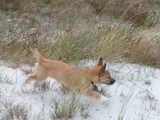 Unserer kleinen Isadora von den Rottentotten gefällt es offensichtlich durch die Dünen zu wetzen.