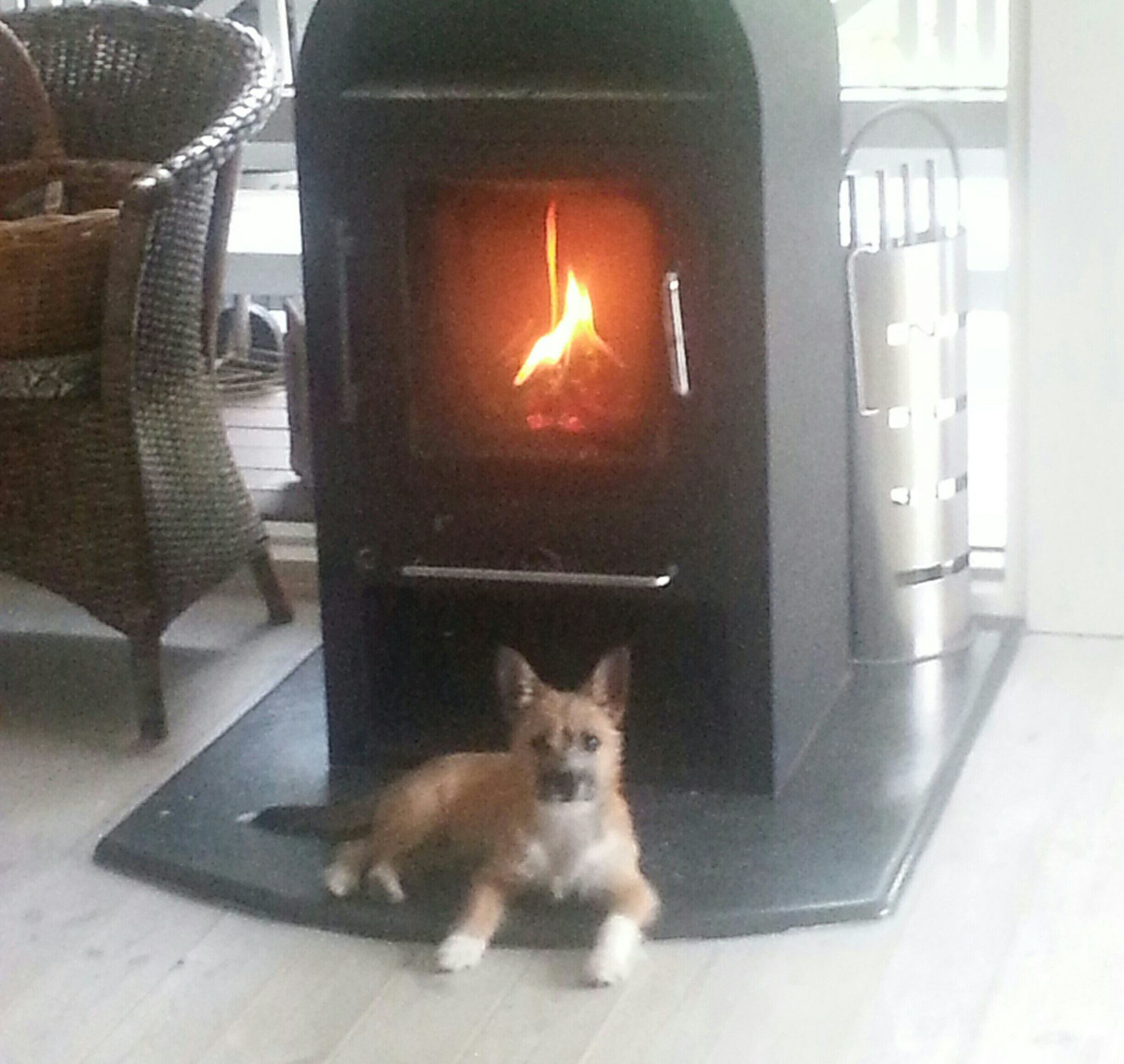 Das klassische Bärenfell vor dem Kamin hat ausgedient…jetzt kommt das moderne Hundefell vor dem Ofen. 😉