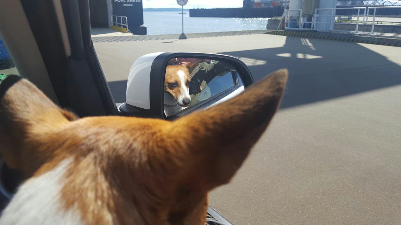Fernando als Beifahrer….er wollte doch einmal aus dem Fenster schauen. Während der Fahrt ist er gesichert.