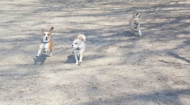 Auch in Berlin gibt’s Sand zum Rennen. Auch wenn es keine Sandbahn für Windhunde ist, sondern nur der Strand am Grunewaldsee…Unsere Podengos haben Riesenspass.