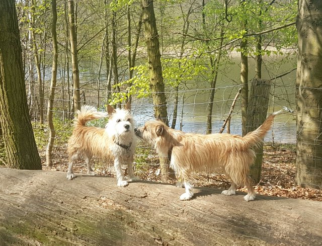 Cachopa mit Isadora…eine süsse Szene auf dem Baumstamm.