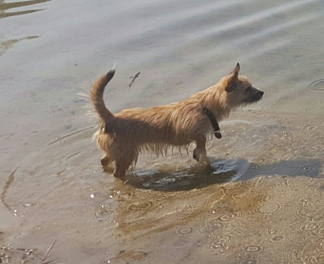 Ein bisschen Abkühlung tut gut. Isadora steht vor 🤔 sie wartet, dass die anderen aus dem Wasser kommen.