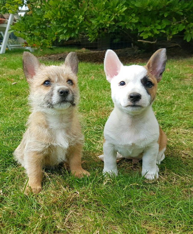Jacinto und Joca, kleine portugiesische Podengos, aus Berlin schauen in die Kamera.