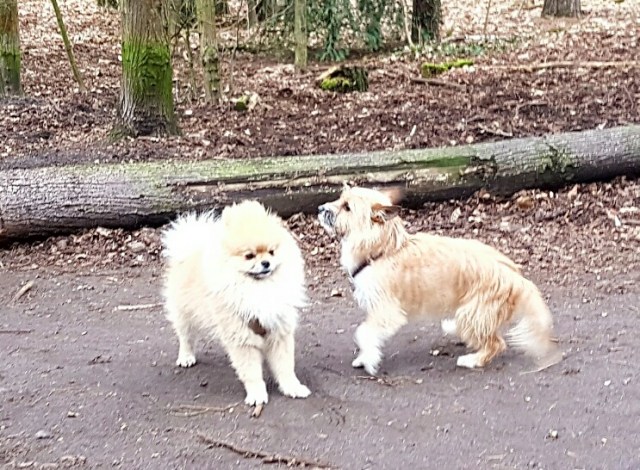 Ein süßer Pomerian, ganz taff, hat es Isadora angetan. Die kleine Fellkugel ist ein ganzer Kerl und präsentierte sich entsprechend, dass selbst Isadora die Stimme weg blieb 😉