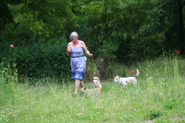 Spaziergang durch den Grünstreifen mit unseren kleinen Podengos, wo der Mohn dreimal so groß ist.