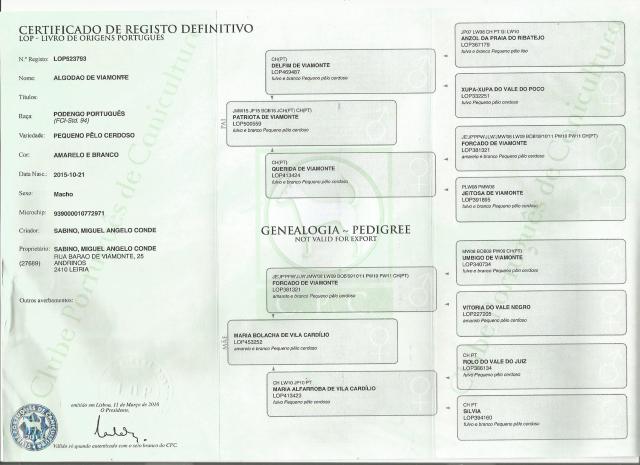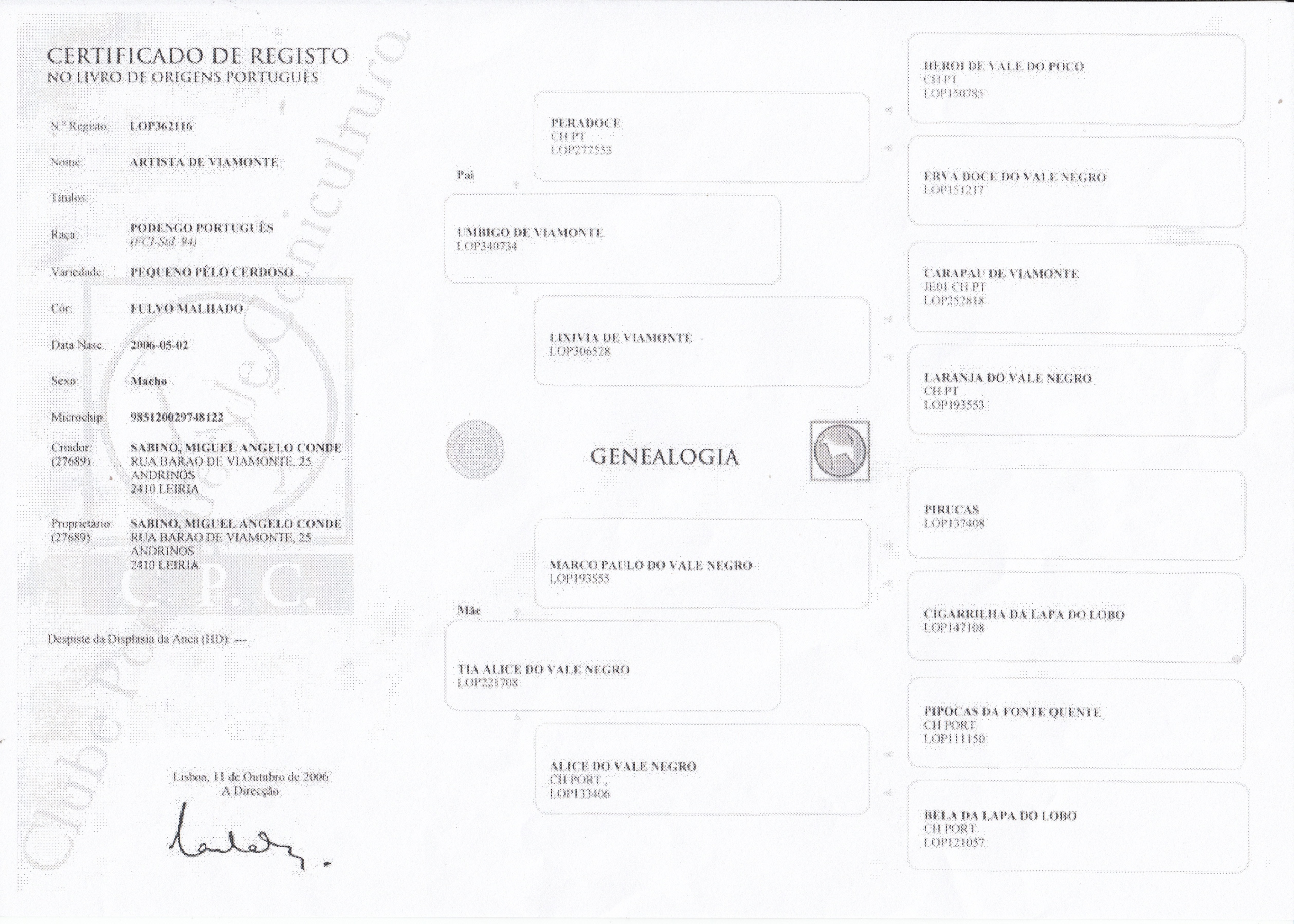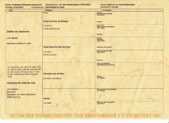 Vater des G-Wurfes WT 16.04.2015 ist der echte Portugiese Artista de Viamonte.